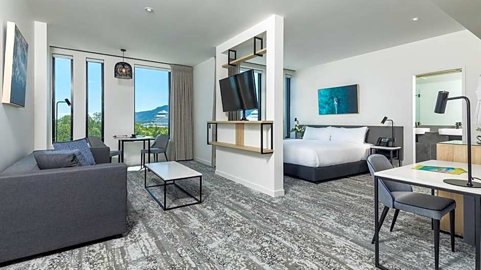 Suitable for guests who require additional space, these are two Executive Hotel Room adjoined by an interconnecting door. These rooms offer two bathrooms, complimentary WiFi, tea/coffee making facilities and views across the bustling town of Cairns.